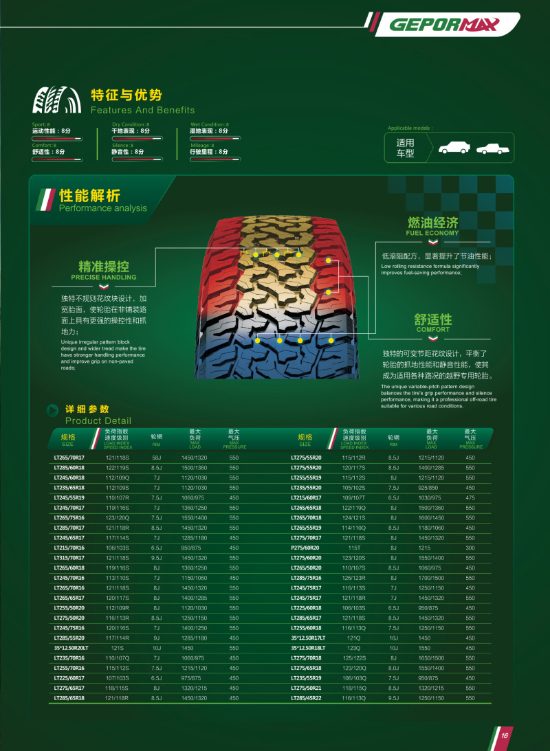 獨(dú)特花紋設(shè)計,在非鋪裝路面上具有超強(qiáng)的耐用性和抓地力,是一款適用各種路況的越野專用輪胎。