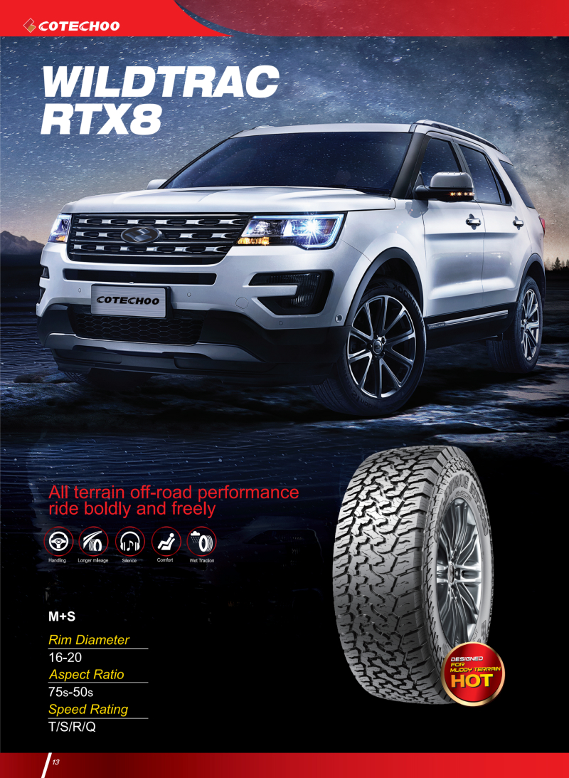 獨(dú)特花紋設(shè)計(jì),在非鋪裝路面上具有超強(qiáng)的耐用性和抓地力,是一款適用各種路況的越野專(zhuān)用輪胎。