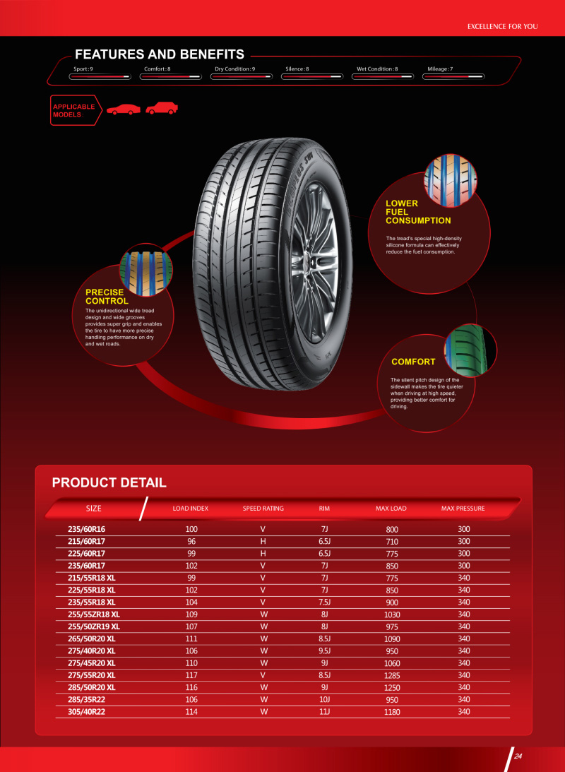 SUV專用輪胎,靜音胎面,超強(qiáng)抓地設(shè)計,精準(zhǔn)操控。